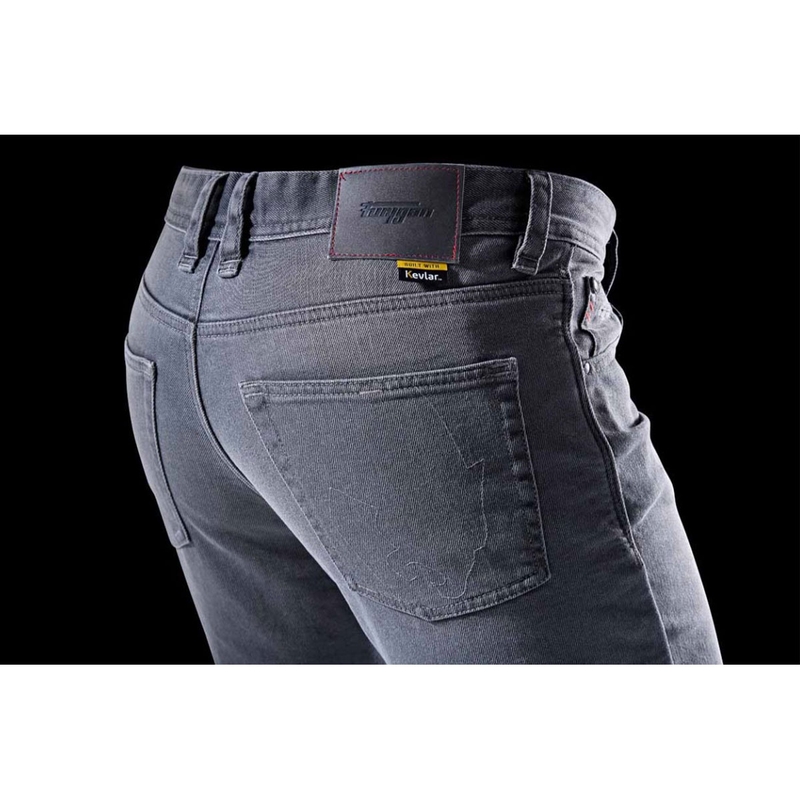 Jeansy na moto jsou zpevněné vlákny Kevlar®, což zvyšuje jejich odolnost proti oděru, a vybavené chrániči kolen a boků D3O® Ghost™, které poskytují spolehlivou ochranu při zachování pohodlí.